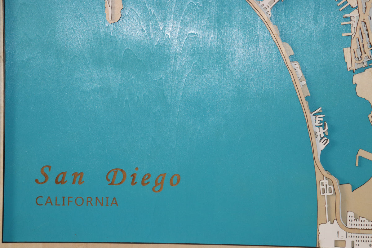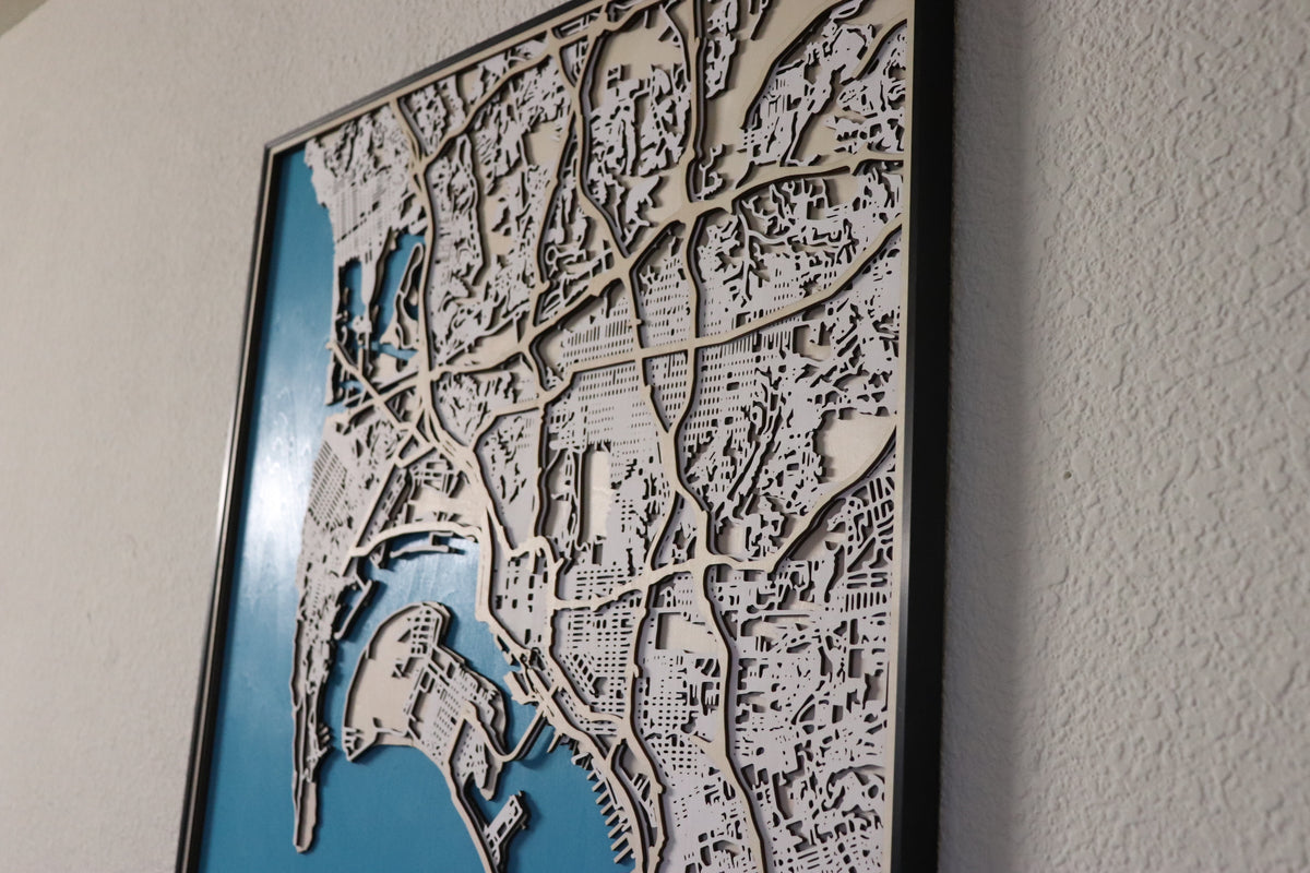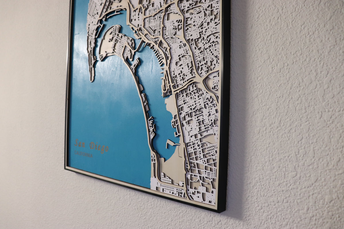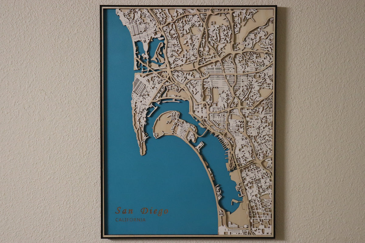 4-Layer Design: This map features an intricate, multilayered construction with 4 distinct layers showcasing San Diego’s land, water, blocks, and streets in stunning detail.